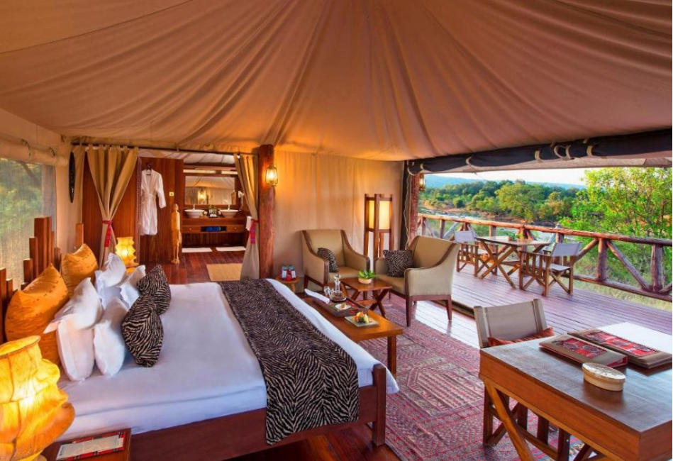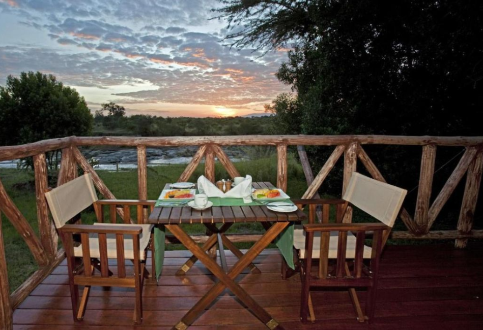 The camp is beautifully positioned along the Mara River, blending refined comfort with an authentic bush setting. Spacious tented suites feature elegant interiors, private decks, and views over the wilderness, while the main lodge offers a swimming pool, relaxed lounge areas, and excellent dining. As night falls, enjoy dinner in the heart of the bush, accompanied by the unforgettable sounds of the African wilderness.